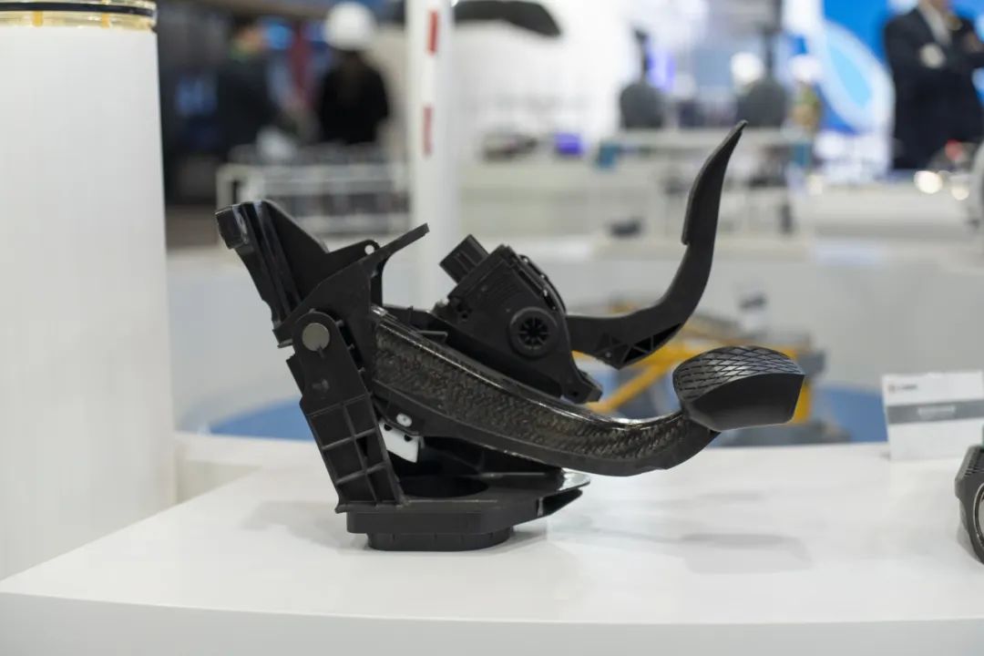 复材踏板箱是实现车辆制动的关键安全功能部件,使用连续纤维增强复合材料片材为主承力骨架,短纤维增强工程塑料起连接成型复杂结构,实现结构更轻、更强、更美观,同时减重40%,疲劳性能提升2倍。