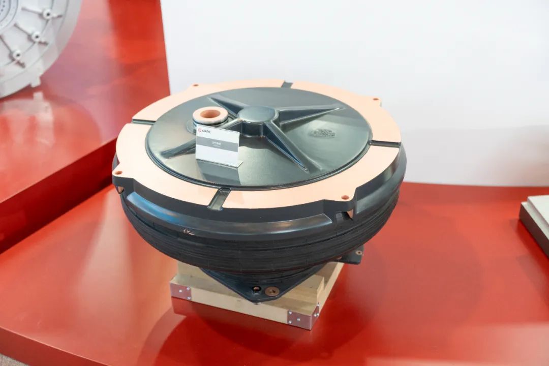 空气弹簧是轨道车辆减振降噪领域的明星产品,安装在车体和转向架之间。它采用压缩空气作为工作介质,结合橡胶弹簧起到减振降噪的作用。相比传统钢弹簧,空气弹簧具有柔软的刚度特性、恒定的固有频率,可有效吸收振动,降低噪音,同时承担车体和乘客重量,适应多个方向的变形。在乘客上下车时,通过控制空气弹簧充排气,可保证列车地板高度恒定,方便乘客出行。