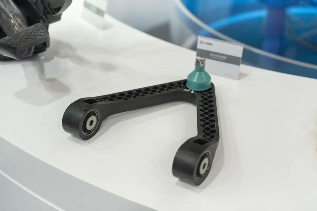时代新材研发的复合材料控制臂采用多种不同复合材料的混合结构设计,较铝合金产品实现减重30%,具备良好的耐腐蚀性能和抗疲劳性能。