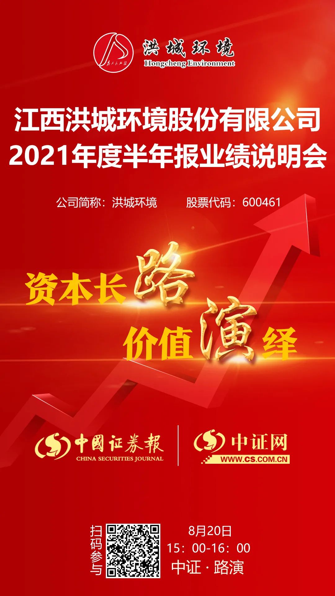 洪城环境2021年度半年报联合路演8月20日在中证网举行