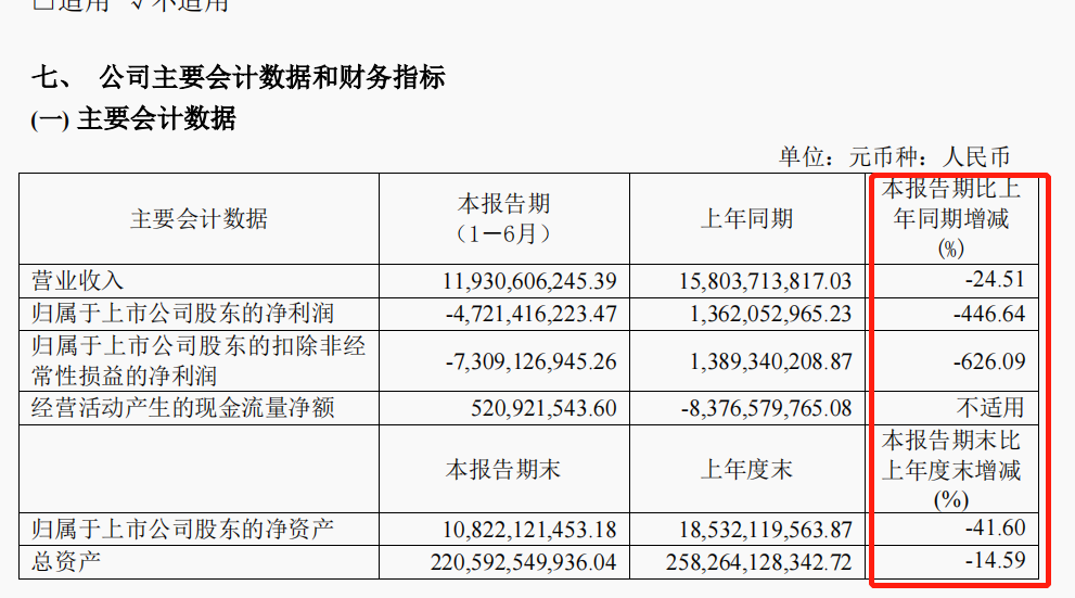 同时归母净利润也出现了亏损,和去年同期相比减少了446.64%。