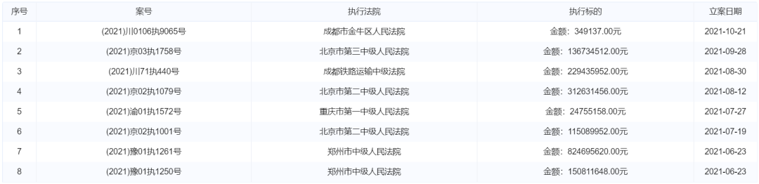 企业预警通查询结果显示,今年5月份以来蓝光发展累计被执行标的合计高达近30亿元。