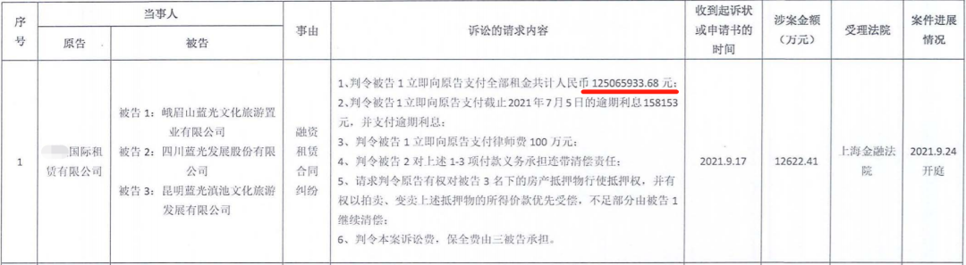 一、蓝光发展卷入两起融资租赁纠纷