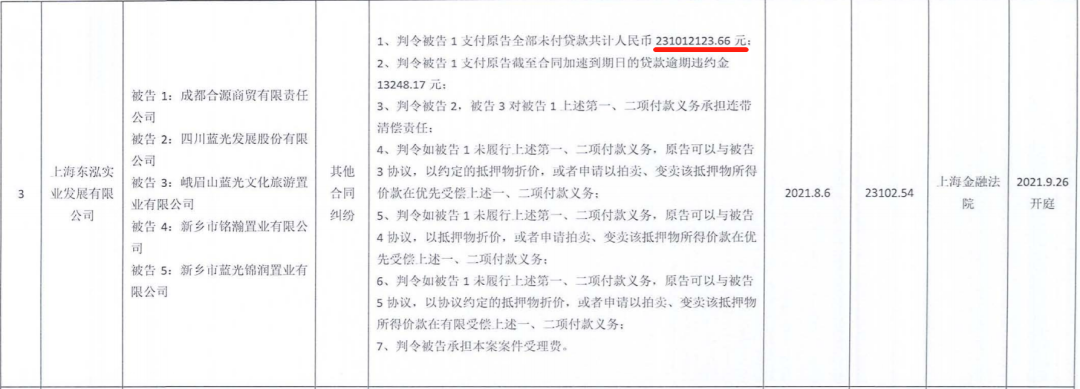 另外,所列诉讼还有一起案件原告为黄浦租赁全资子公司,事由为“其他合同纠纷”,未付“贷款”达2.3亿元。