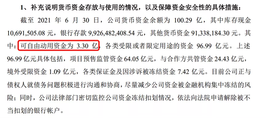 根据日前蓝光发展公告披露,截止到9月24日,蓝光发展光是到期未能偿还的债务本息合计就达215亿元,而截至6月底,公司可以自由动用的资金只有3亿左右,连还逾期债务的零头都不够。