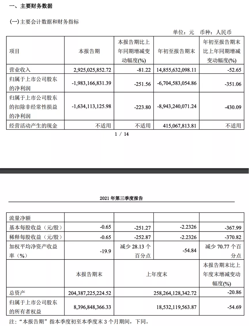 仅今年三季度,公司实现营收29.25亿元,同比下滑81.22%;