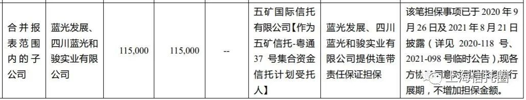 其次就是五矿信托,金额约11.5亿元。令人意外的是,五矿信托居然同意给蓝光进行了展期。