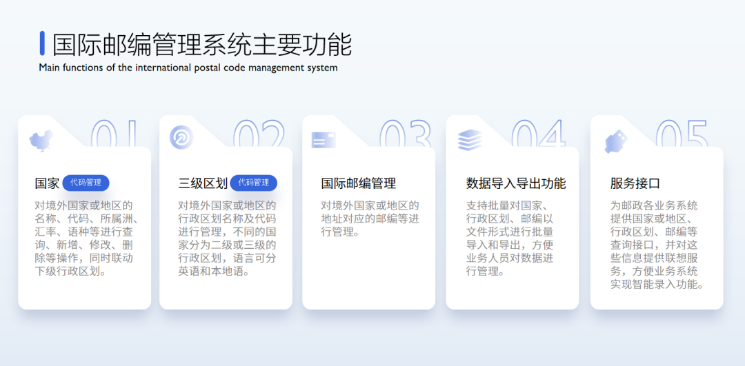 3.国际邮编管理,对境外国家或地区的地址对应的邮编等进行管理。