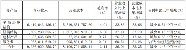 2021年,杭萧钢构营业成本为82.47亿元,同比增长23.23%;营业收入为95.78亿元,同比增长17.68%;营业成本增速明显快于营业收入增速,该公司综合毛利率下滑1.45个百分点。