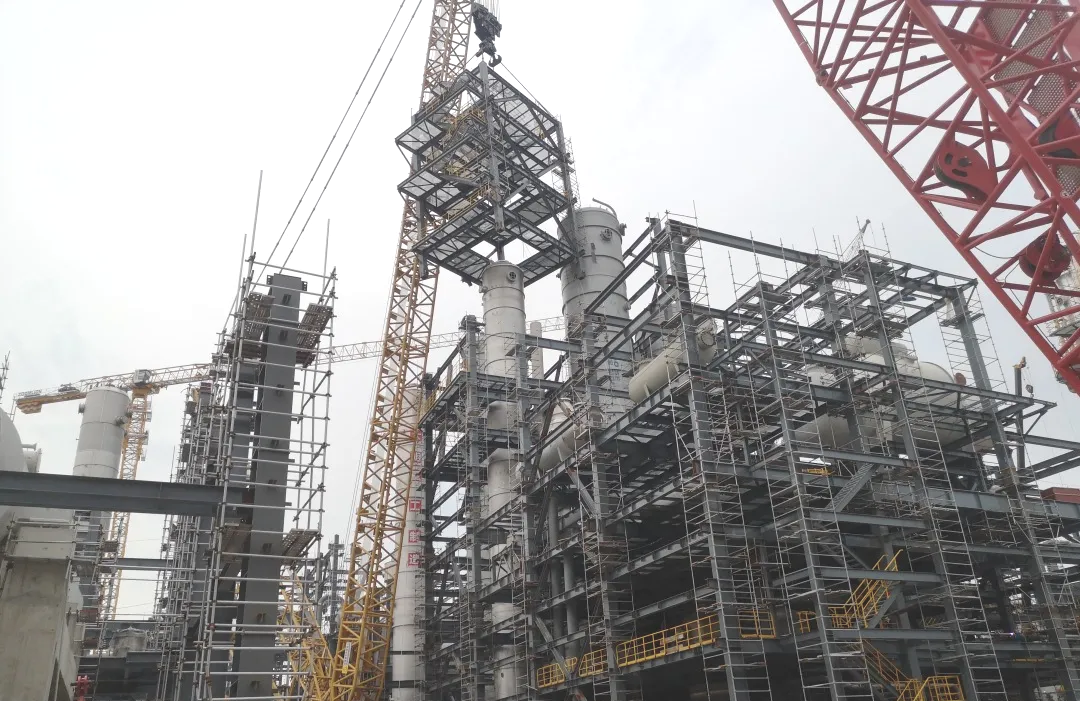 该项目位于江苏省连云港市,由包括氧化反应单元、氧化结晶单元、PTA分离及干燥单元等10个单体组成;涉及焊接箱型、H型钢柱钢梁、热轧H型钢柱钢梁、管架等多种钢结构形式。据了解,该项目采用全球最先进、安全、环保、绿色、智能化的PTA生产技术。