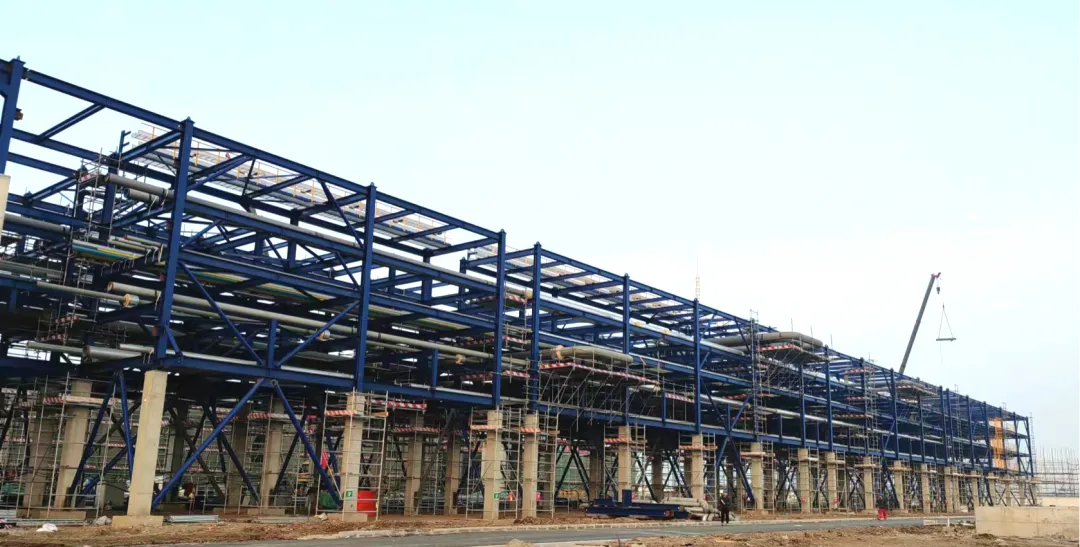 该项目位于甘肃省酒泉市玉门市,杭萧钢构负责其中化工框架管廊结构的制作。项目建成后将推动玉门市成为西北地区硅氟新材料产业核心基地。