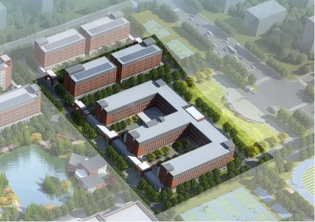 该项目位于山东省济南市高新东区,建筑体量主要为一栋教学楼,两栋宿舍楼。教学楼地上5层,地下1层,建筑最高点为23.47米;宿舍楼地上6层,建筑最高点为24.98米。