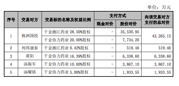 2月10日,妇科中成药龙头千金药业连发十余则公告,公布了总价超6亿元的两笔收购:一笔是株洲国投、列邦康泰持有的千金湘江药业28.92%的股权;另一笔是株洲国投和黄阳等21名自然人持有的千金协力药业68.00%的股权。