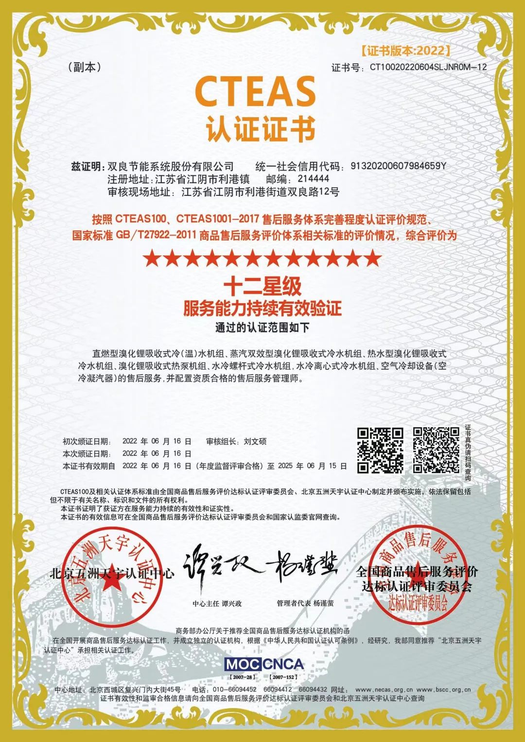 成为业内率先通过全国商品售后服务“五星级”、CTEAS售后服务体系完善程度“七星级(卓越)”和“十二星级服务能力持续有效验证”三项全部认证的企业。