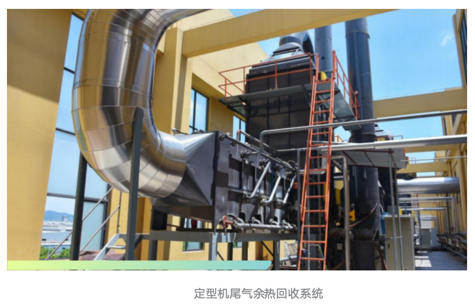 回收定型机尾气余热加热自来水至55℃,汇至热水箱,供生产使用,每天可加热热水2250吨,年节约3390吨标准煤。