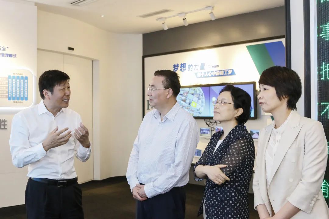 蔡晓春副书记一行首先参观了精工钢构集团展示厅,详细了解了精工钢构集团发展历程、战略规划和业务板块。调研中,蔡晓春副书记对精工在装配式建筑、建筑光伏一体化以及数字化转型等方面取得的成绩予以高度肯定。