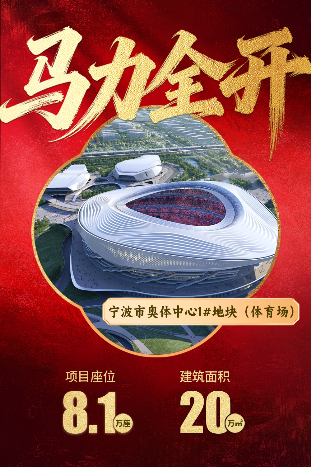宁波市奥体中心项目位于宁波市姚江新区启动区,建筑面积约20万㎡。其体育场是一座可容纳约8.1万人的大型体育场,在国内座位数仅次于国家体育场(鸟巢)。