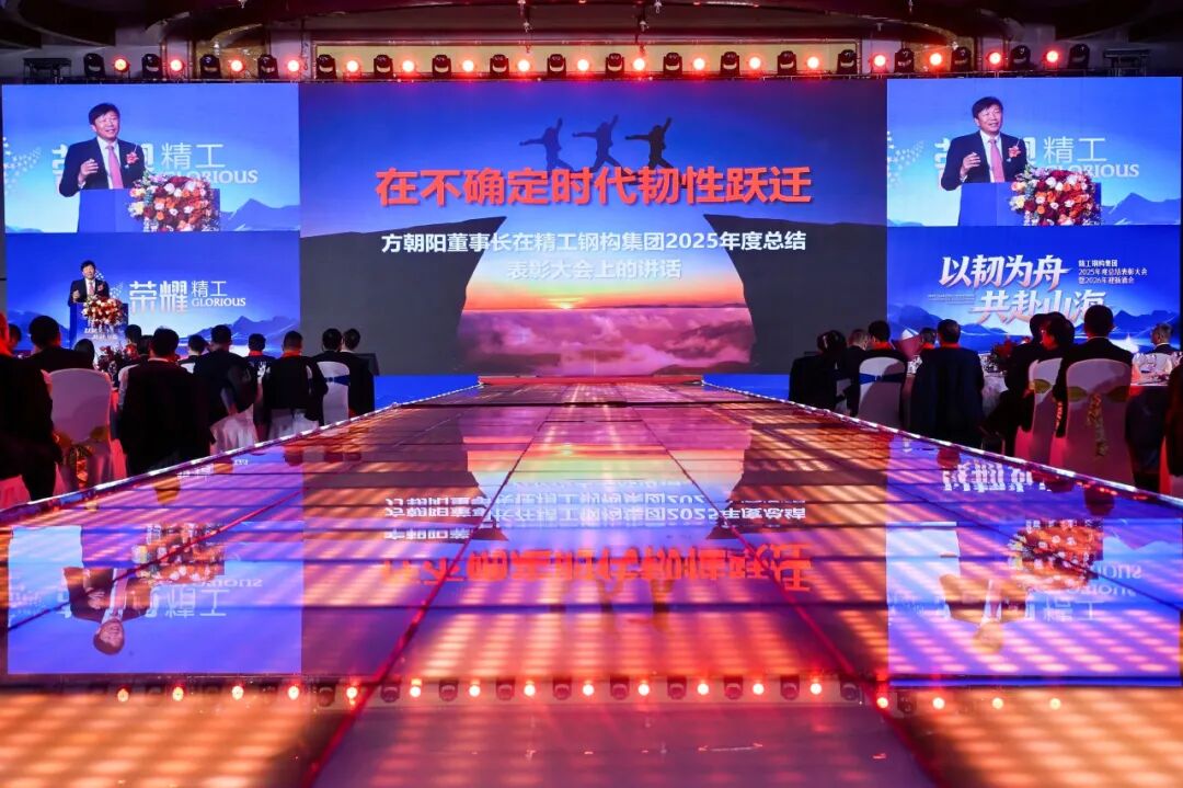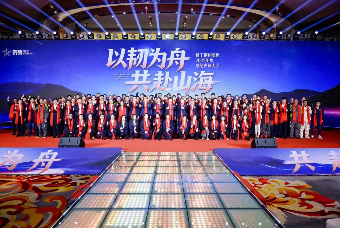 2月5日(农历腊月十八),“以韧为舟共赴山海”精工钢构集团2025年度总结表彰大会在绍兴隆重召开。来自集团层面及旗下各事业部的领导、先进、干部职工、海外员工家属等共计500余人参加大会。