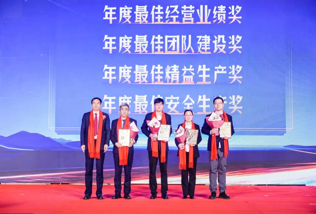 集团执行董事长兼执行总裁孙关富先生为最佳经营业绩奖、最佳团队建设奖、最佳安全生产奖、最佳精益生产奖获奖单位颁奖