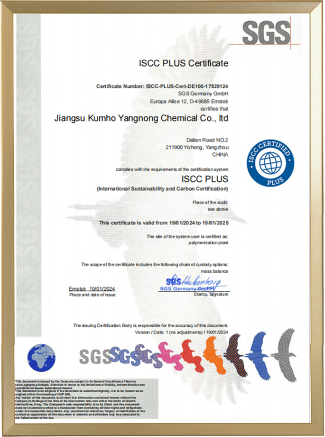近日,中化国际旗下扬农锦湖生产的环氧树脂产品通过第三方权威认证机构SGS审核,获得ISCC PLUS认证(国际可持续发展和碳认证)证书,成为国内首家拥有ISCC认证的环氧树脂生产商。