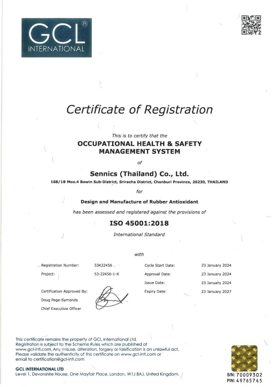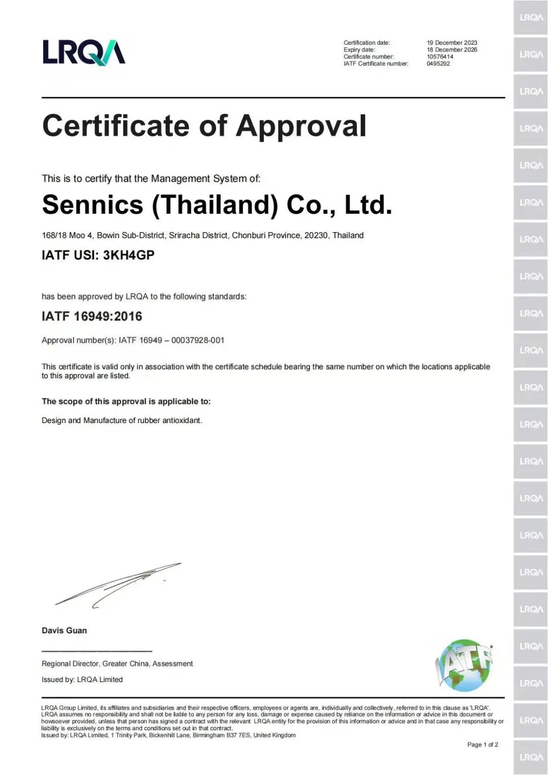 日前,中化国际泰国添加剂工厂(圣奥化学泰国有限公司,以下简称“泰国工厂”)顺利通过IATF16949:2016(汽车质量管理体系)、ISO14001:2015(环境管理体系)及ISO45001:2018(职业健康安全管理体系)认证证书,标志着工厂在规范化、标准化、精细化管理上迈上新台阶,将有力提升工厂和产品的客户认可度和国际竞争力。