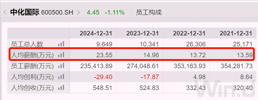 至于职工,至2024年末,中化国际职工总数大约9600人,当年人均创收大约548万元,人均税前薪酬超过23万元。