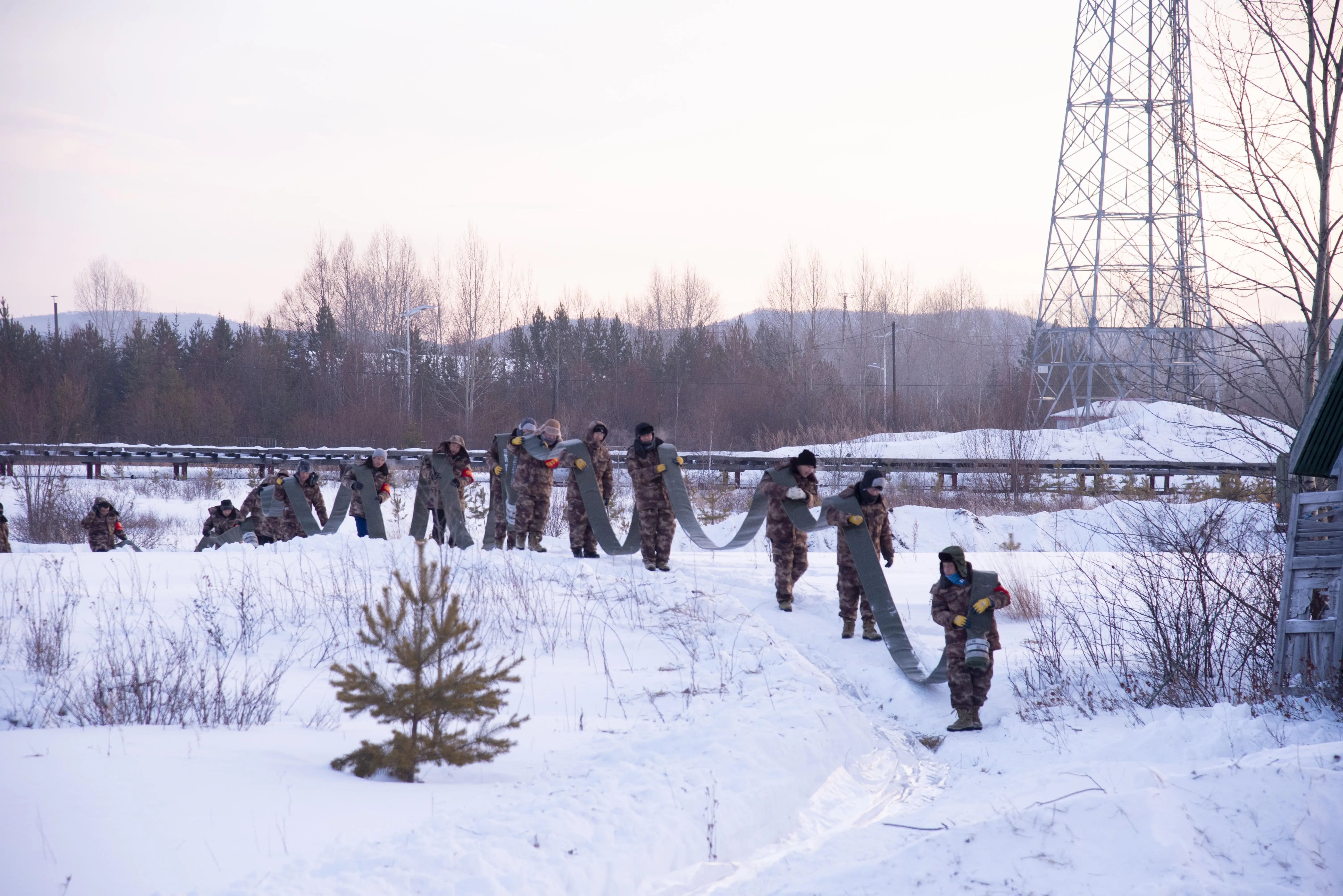 为了赶在1月份的低温窗口期内完成所有试验科目,试验团队在零下三四十摄氏度的极端天气下,历时20余天,累计铺设输油管线数公里,共开展各类试验科目30余项。