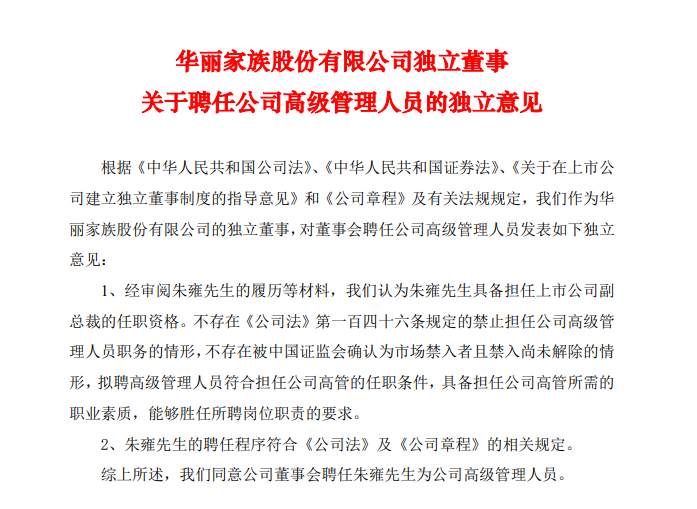华丽家族在今年2月和7月分别发布聘任高级管理人员的公告: