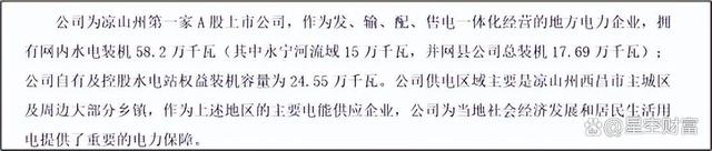 正所谓“靠山吃山,靠水吃水”,西昌以水力发电为主。2023年年报显示:作为发、输、配和售电一体化经营的地方电力企业,西昌拥有网内水电装机58.2万千瓦。
