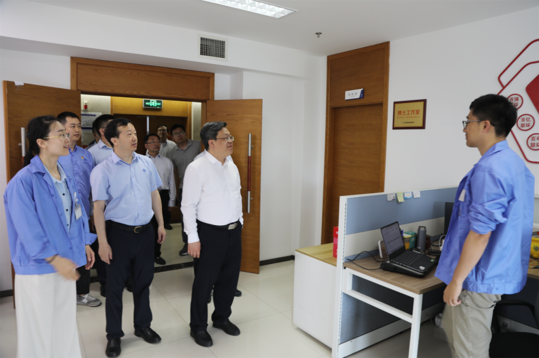 郁平一行实地走访参观了公司生产车间、信息调度中心和药物研究院博士工作站,现场听取了夏春来关于企业当前生产经营情况和围绕联环“双示范”一体推进改革创建工作的汇报,详细了解了公司科技创新、绿色发展、数智赋能等方面的具体情况。