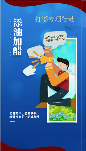 筑牢防谣网上长城。要加强科技创新,利用新技术构建网络谣言监测预警防控体系,提升对网络谣言监测发现与管控能力。进一步畅通违法有害信息举报渠道,及时受理网民举报线索,会同官方部门和权威机构共同开展辟谣澄清工作,合力筑牢抵御网络谣言的钢铁长城。