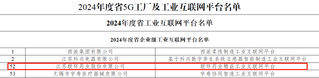 近日从省工信厅传来喜讯,联环药业精益工业互联网平台成功入选2024年度省企业级工业互联网平台。这是继省级示范智能车间、江苏省工业互联网标杆工厂、“五星上云”企业等称号后,公司信息化建设取得的又一殊荣。