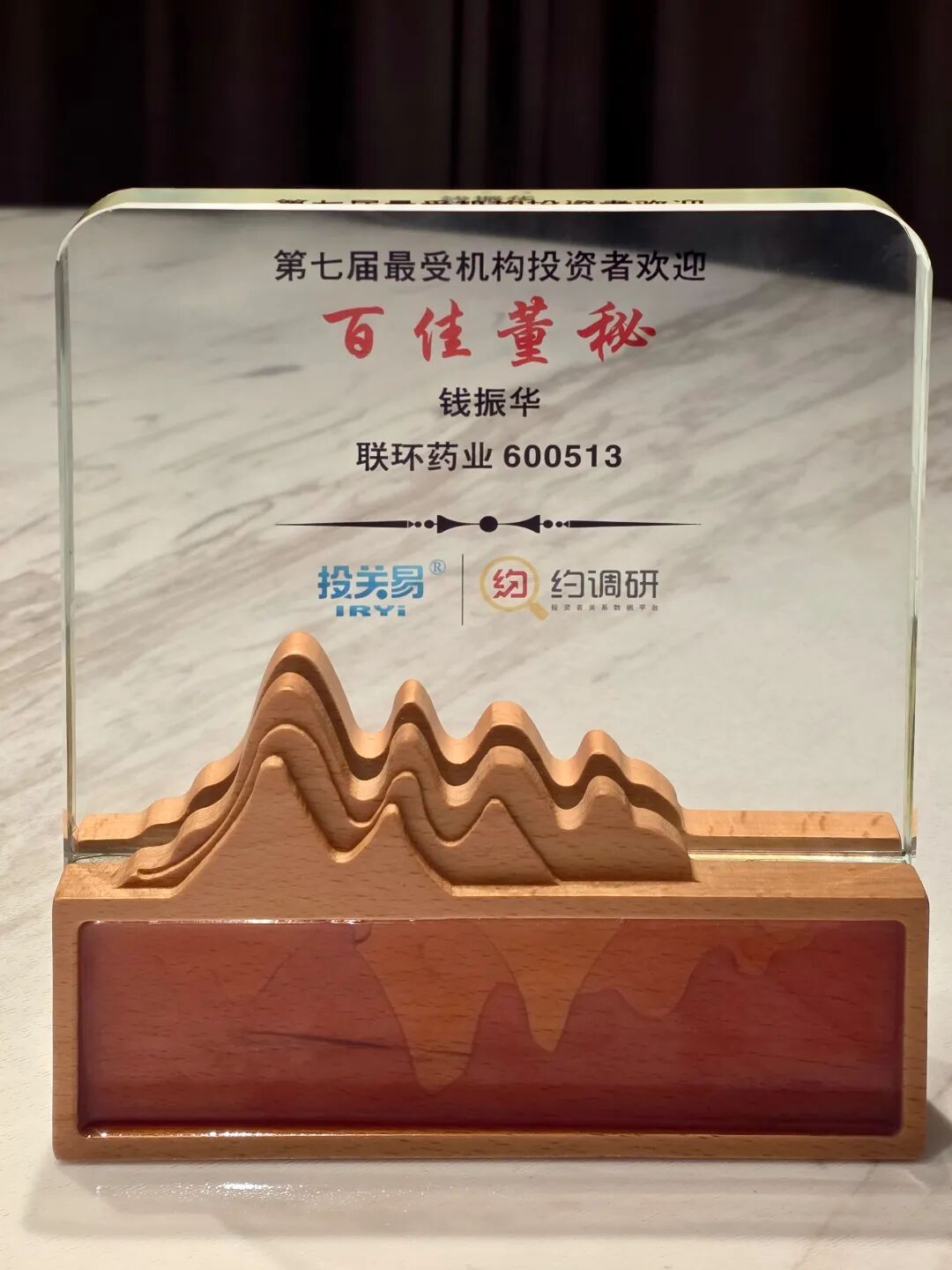 第七届“百佳董秘”颁奖典礼近日圆满收官,该评选是国内首个由机构投资者、卖方分析师与上市公司高管实名投票的权威奖项,联环药业受邀参评,公司董事长兼董秘钱振华顺利摘得“最受机构投资者欢迎百佳董秘”殊荣,董事会办公室获得“最受机构投资者欢迎董办卓越团队”称号,彰显了资本市场对公司治理与投资者关系管理工作的高度认可。