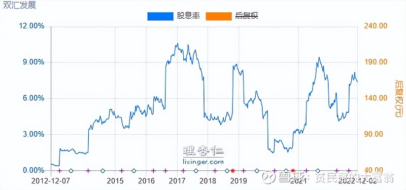 如图是双汇发展十年来的年度股息率和分红率,都很高,现金奶牛,但是为什么投资者长期持有的收益率很一般呢?
