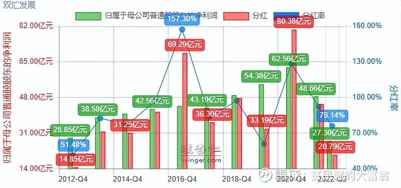 我们看最典型的双汇发展,这个公司具有很高的净资产收益率,很高的股息率,几乎100%的分红率。