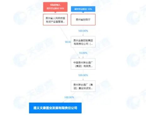 遵义文康置业由贵州茅台置业100%持股,穿透后则由贵州茅台集团100%控制,注册资本为11亿元,略多于此次拿地金额。贵州茅台集团同时是上市公司贵州茅台(600519.SH)的控股股东。