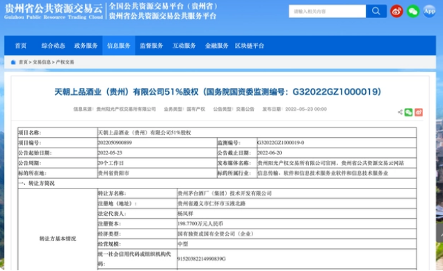2022年10月,茅台技开公司茅台为深入贯彻落实集团公司品牌及产品瘦身的规划,经茅台集团董事会批准,转让51%股权,退出天朝上品酒业(贵州)有限公司股东行列。