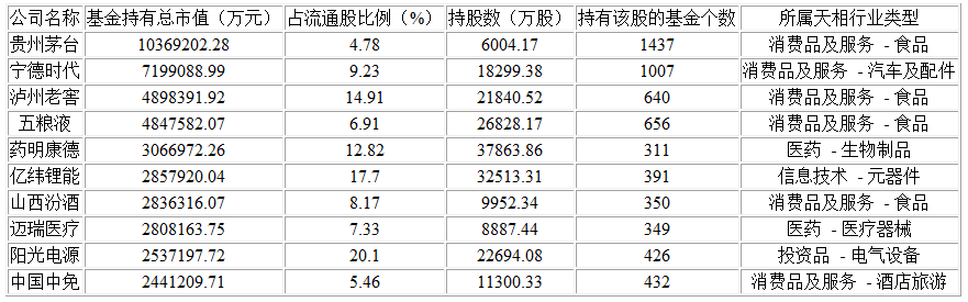 数据显示,2019年二季度末,贵州茅台超越中国平安,成为公募基金头号重仓股,此后两年始终是基金最爱,直到2021年三季度末被宁德时代超越,2022年二季度末贵州茅台重回基金头号重仓股,并在此后两个季度连续蝉联。
