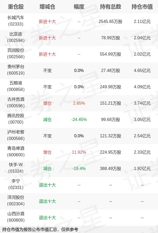 7月20日易方达基金旗下萧楠管理的易方达消费精选股票型基金公布中报,近1年净值增长率-10.14%。与上一季度相比,该基金前十大重仓股新增长城汽车,比亚迪,百润股份;其中贵州茅台持仓占比9.5%,为该基金第一大重仓股;李宁,洋河股份,山西汾酒等退出前十大重仓股;详细数据如下: