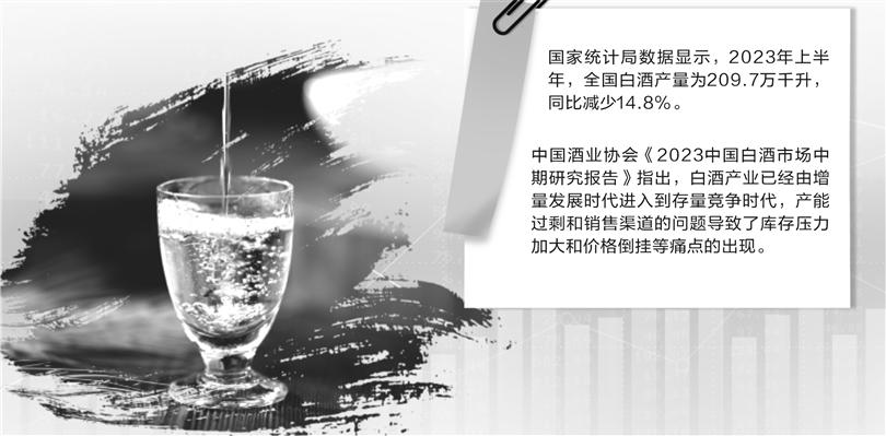 国家统计局数据显示,2023年上半年,全国白酒产量为209.7万千升,同比减少14.8%。“商务、团购、宴席”三家马车并未能齐头并进,白酒行业进入调整期已成事实,中国酒业协会《2023中国白酒市场中期研究报告》中提出,2023年,消化库存是中国酒商的首要任务,未来机遇与压力并存,乐观与焦虑并存。