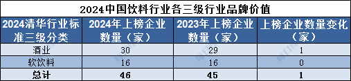 在上榜企业数量方面,酒业同样位居第一,上榜企业数量增至30家;软饮料位居第二,上榜企业数量为16家。