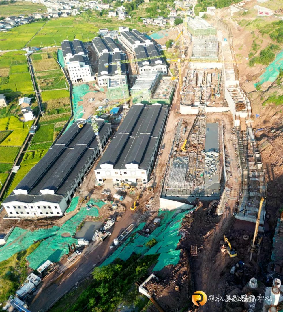 近日,走进贵州茅台酒股份有限公司“十四五”酱香酒习水同民坝一期项目施工现场,一幢幢白酒生产厂房拔地而起、林立山间,工程车辆来回穿梭、机器轰鸣声此起彼伏,施工人员正铆足干劲、紧张作业……现场一派热火朝天的忙碌场景。
