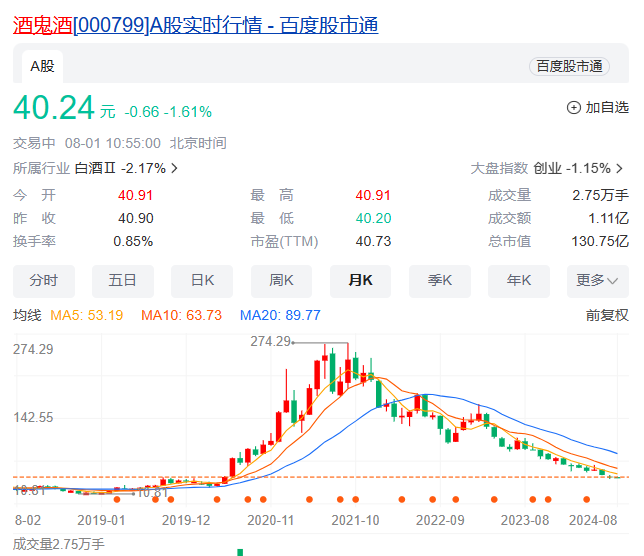 7月,五粮液、古井贡酒、山西汾酒等股价也遭遇了年内新低。