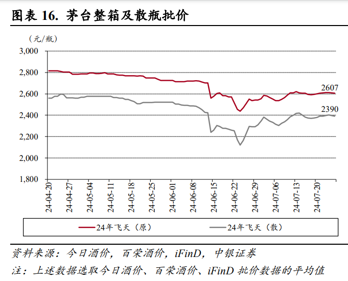 2024—2025年超高端白酒企业的零售价将面临更大压力,如行业龙头不能控制供应,预计2025年底,茅台及五粮液的批发价可能较当天价格下跌50%和17%,直到2026年企稳。