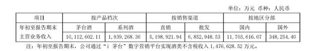 在产品销售方面,2024年前三季度,贵州茅台的茅台酒贡献营业收入约为1011亿元,系列酒营业收入不到194亿元;来自直销渠道的营业收入约520亿元,批发渠道贡献的营业收入则在685亿元左右,其中,第三季度,贵州茅台通过“i 茅台”数字营销平台实现酒类不含税收入约45亿元。