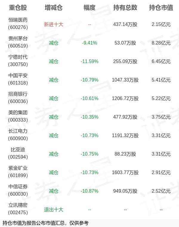 4月21日平安基金旗下钱晶李严管理的平安中证A50交易型开放式指数基金公布一季报,近1年净值增长率9.79%。与上一季度相比,该基金前十大重仓股新增恒瑞医药;其中贵州茅台持仓占比10.37%,为该基金第一大重仓股;立讯精密等退出前十大重仓股;详细数据如下: