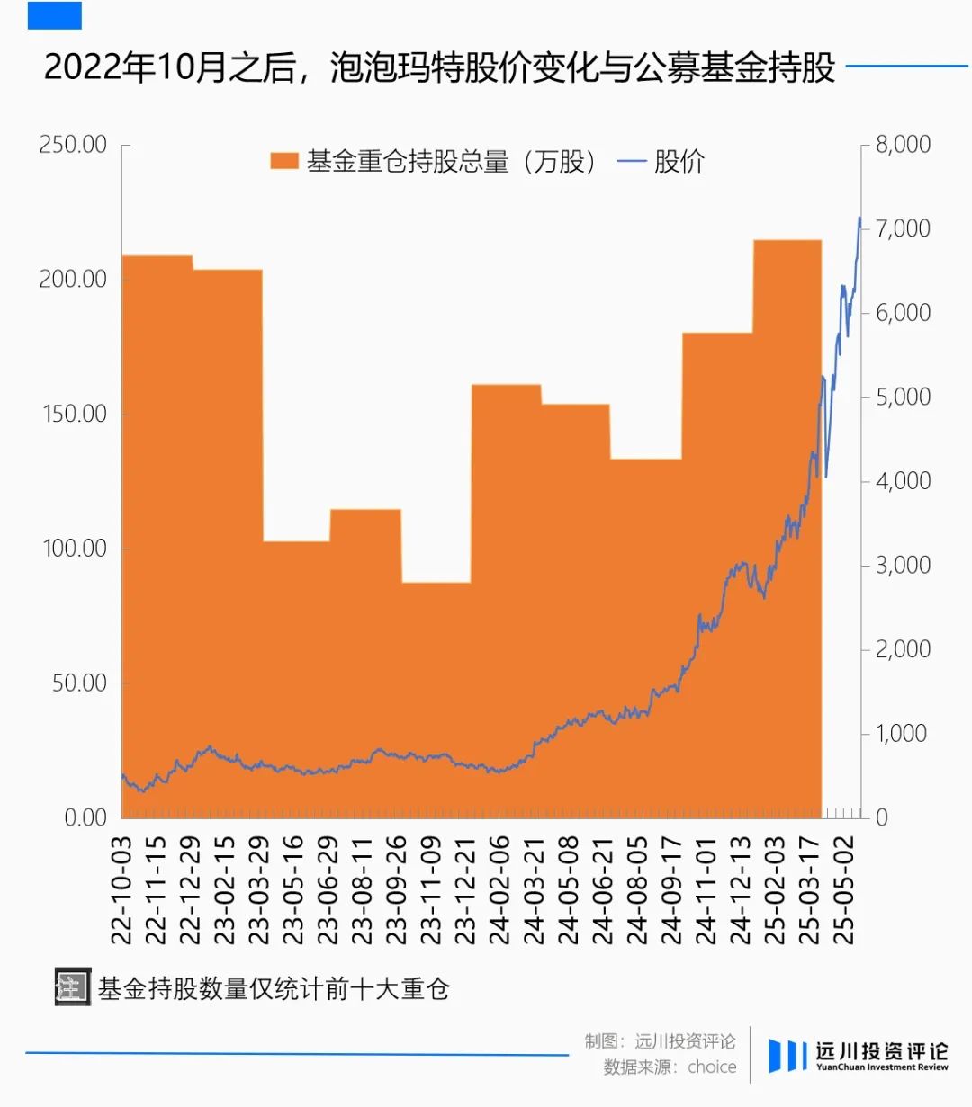 2024年以来,重仓持有泡泡玛特的基金数量不断提升。值得一提的是,基金列表里“茅味”渐浓,胡昕炜、农冰立、周文波等曾经长期围拢在茅台身后的基金经理,逐渐在泡泡玛特会师。