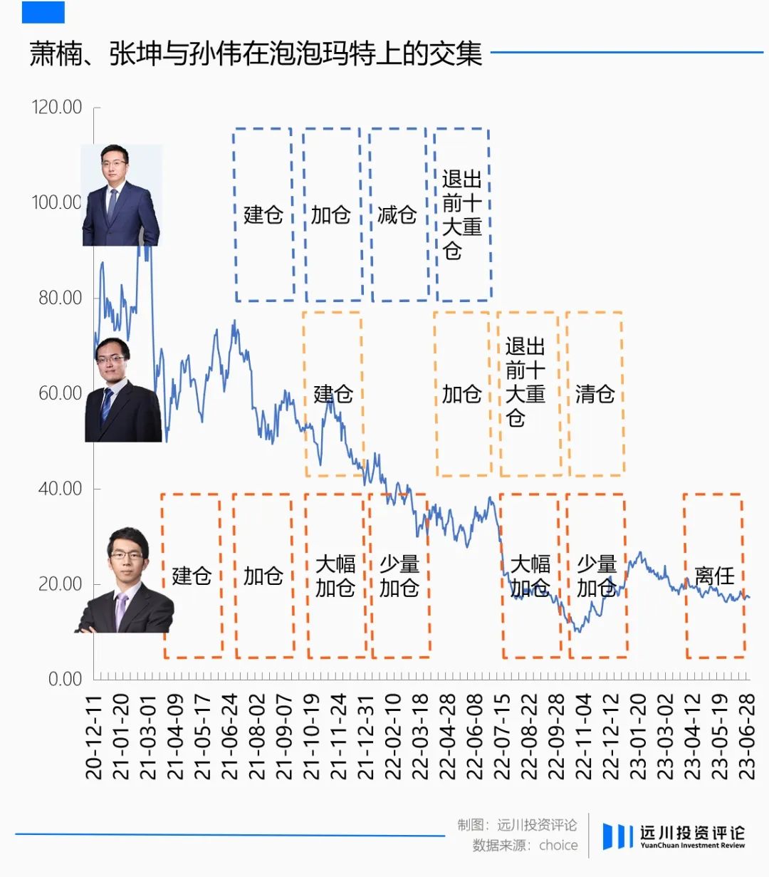 在泡泡玛特下跌过程中,一直不缺逆向抄底的明星基金经理,22年之前有萧楠,22年之后有张坤,前东方红基金经理孙伟从21年三季度首次买入后连续增持,并一直持有到了离开东方红前的23年上半年,只是在彼时那个个沉闷的市场里,在那种消极的情绪下,止不住流出去的水,就止不住资产们下跌的趋势。