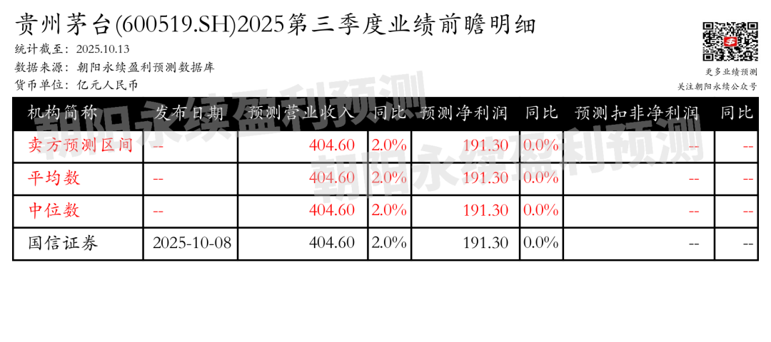 截至2025年10月13日,根据朝阳永续季度业绩前瞻数据: