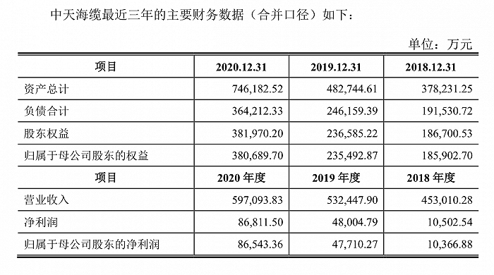 到了2021年5月19日,中天海缆一度向上交所提交了首次公开发行股票并在科创板上市的申请材料,上交所2021年5月27日受理。